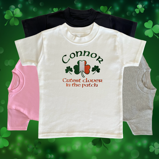 Personalised Embroidered Children's St Patrick's Day Shamrocks Design