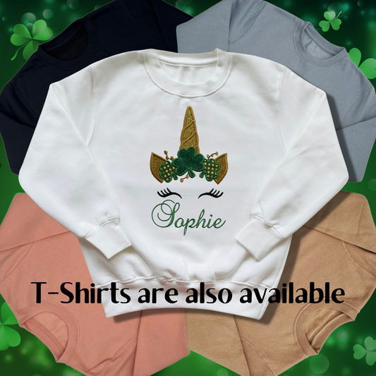 Personalised Embroidered Children's St Patrick's Day Unicorn Design