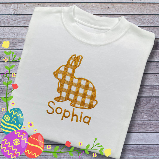 Personalised Embroidered Children's Easter Gingham Bunny Design