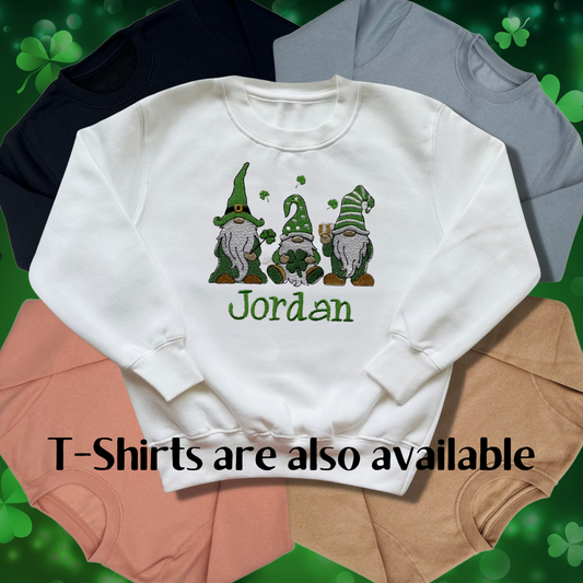 Personalised Embroidered Children's St Patrick's Day Gnome Design