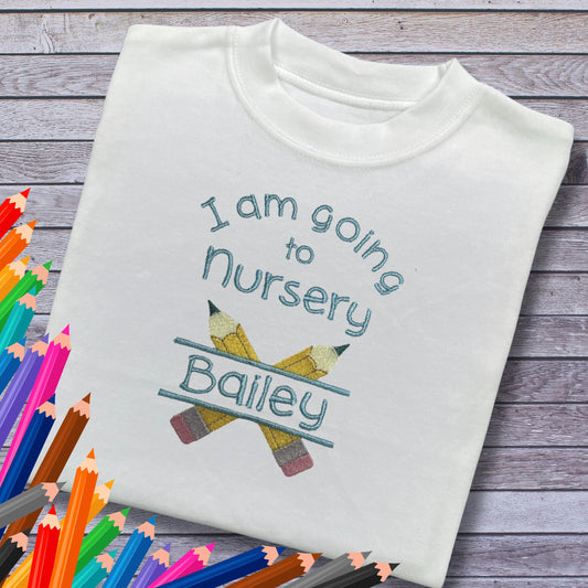 Personalied Embroidered Children's Going to Nursery Top: Cute Pencil Design