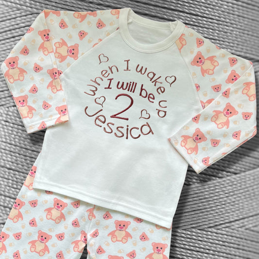 Childrens Personalised Embroidered Pyjamas and Sleepsuits. When I wake up I will be'. Cute Embroidered Birthday Design with the Child's Name