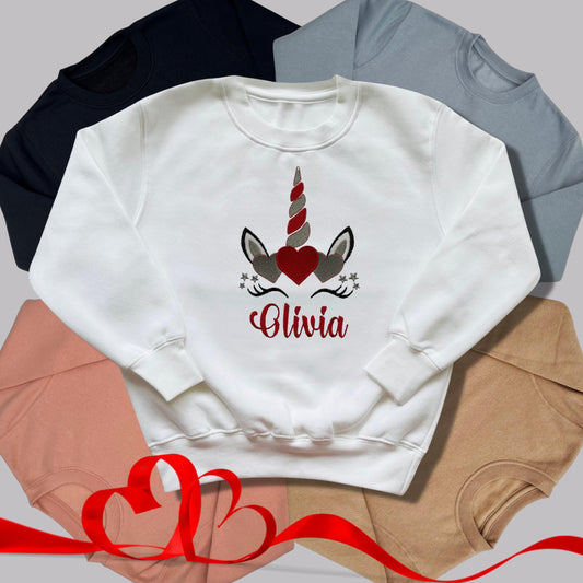 Personalised Embroidered Children's Valentine's Top: Unicorn Design.