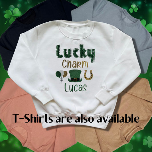 Personalised Embroidered Children's St Patrick's Day Lucky Charm Design