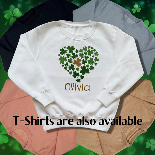 Personalised Embroidered Children's St Patrick's Day Heart of Shamrocks Design