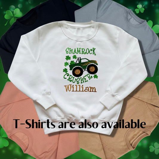 Personalised Embroidered Children's St Patrick's Day Monster Truck Design