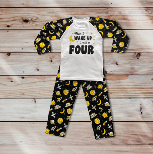 Childrens Birthday Pyjamas. Space Design With the Words 'When I Wake Up I'll Be .....'. Super Cute for the Night Before Their Big Day.