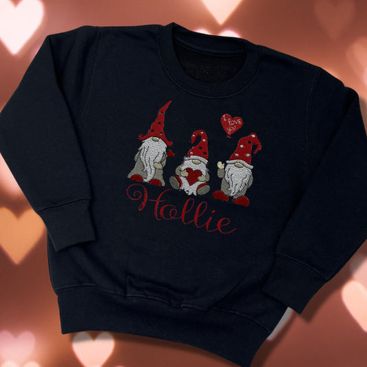 Personalised Embroidered Childrens Valentine's Shirt. Cute Gnome Design. Perfect Outfit for Valentines Day or a Gift