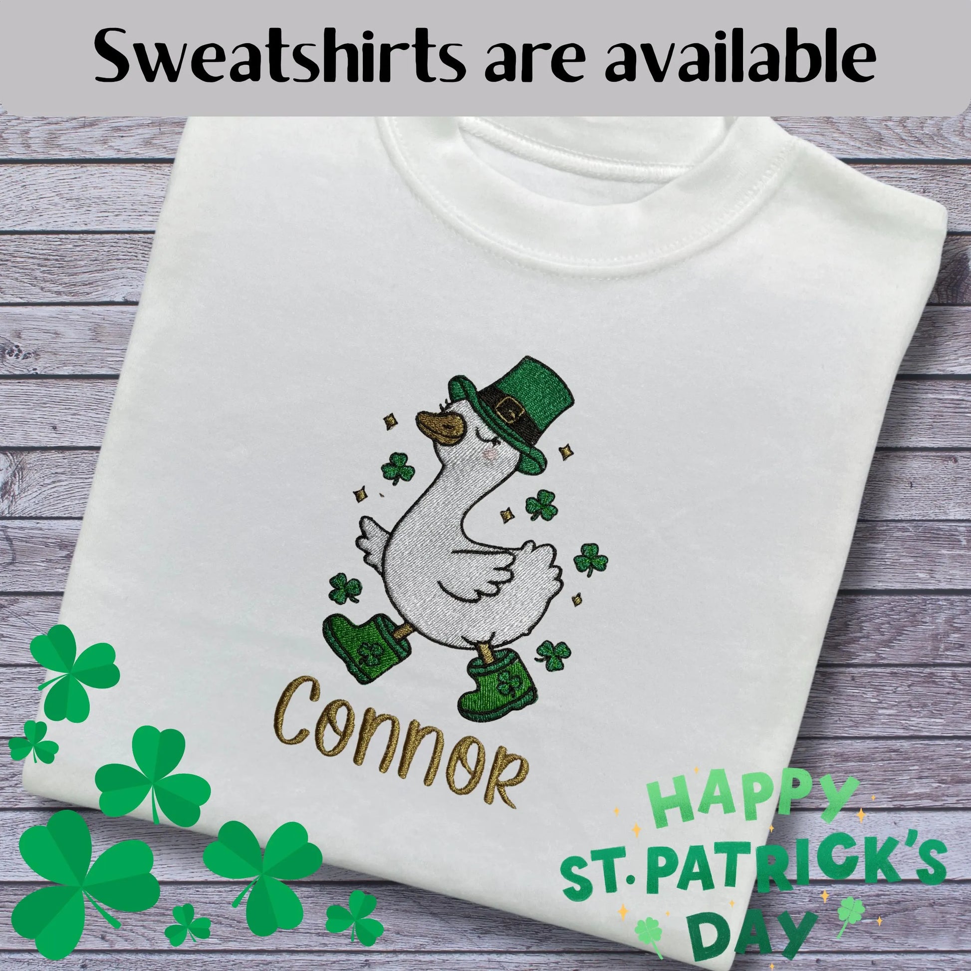 Super Cute Embroidered and Personalised St Patrick's Day Tops. Cute Embroidered Goose Design Personalised with the Child's Name Underneath. Perfect for Children to Wear During the Celebrations. Other Cute Designs can be Found in my Shop.