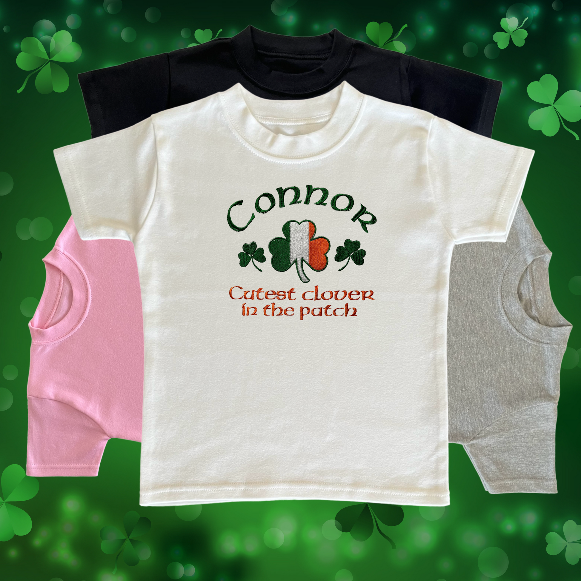 Personalised Embroidered Children's St Patrick's Day Top, Irish Flag Shamrock Design