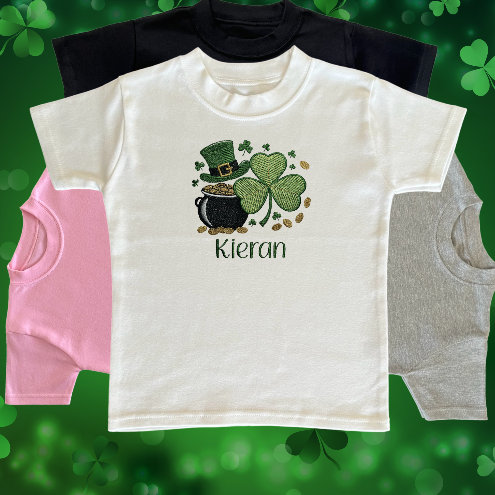 Personalised Embroidered Children's St Patrick's Day Pot of Gold Design
