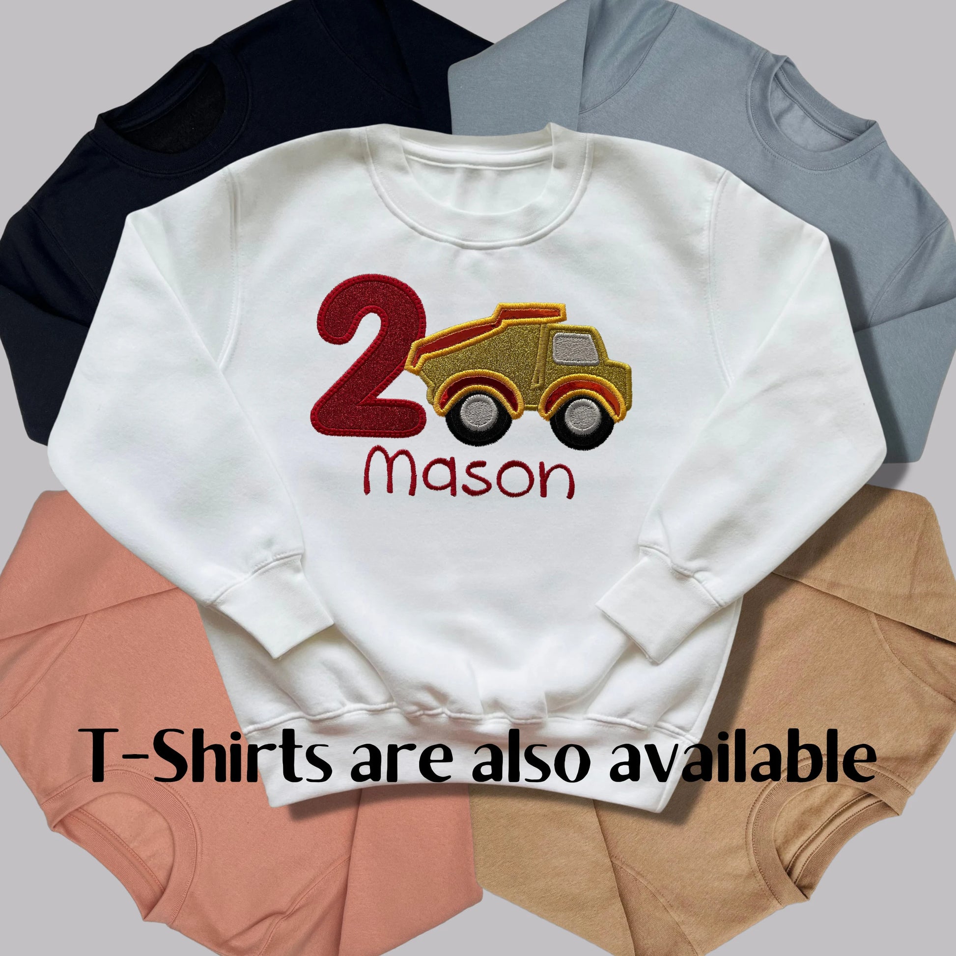 Personalised EmbroideredConstruction Vehicle Birthday T-Shirts and Sweatshirts